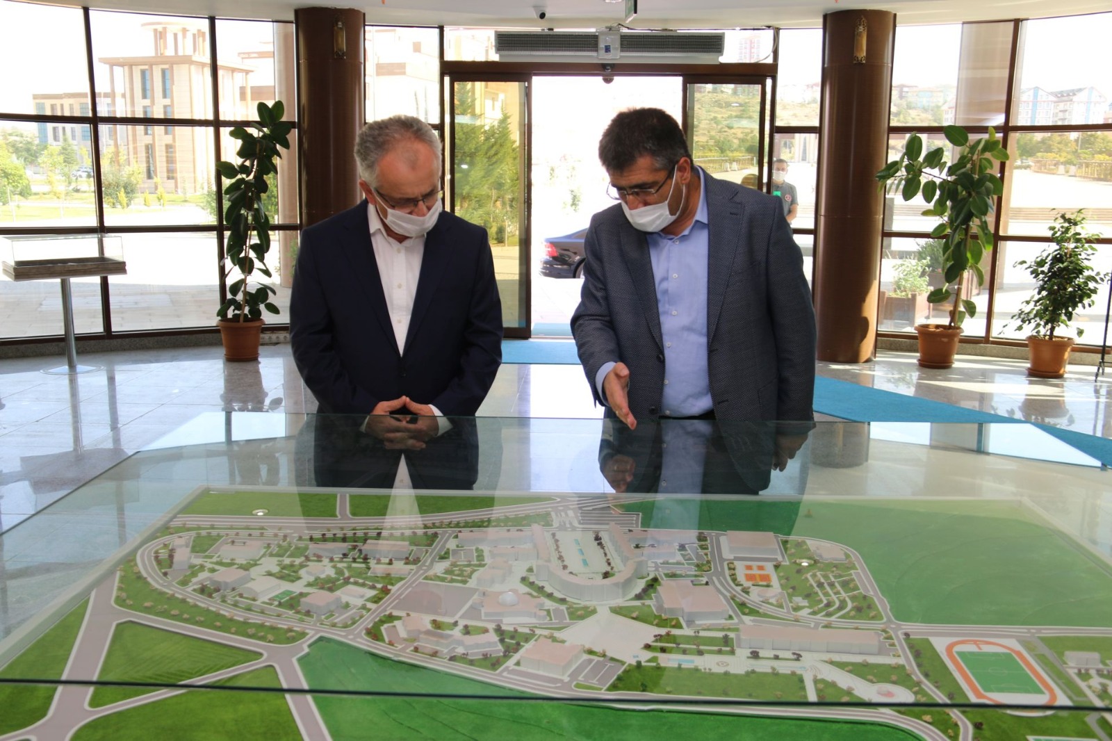 Ziyaret sonunda Rektör Prof. Dr. Aytekin ile üniversite yerleşkesini gezen Rektör Prof. Dr. Özçelik, yerleşke içerisinde bulunan kütüphane, kültür ve kongre merkezi, spor tesisleri, fakülte ve meslek yüksekokulları hakkında bilgi aldı.
