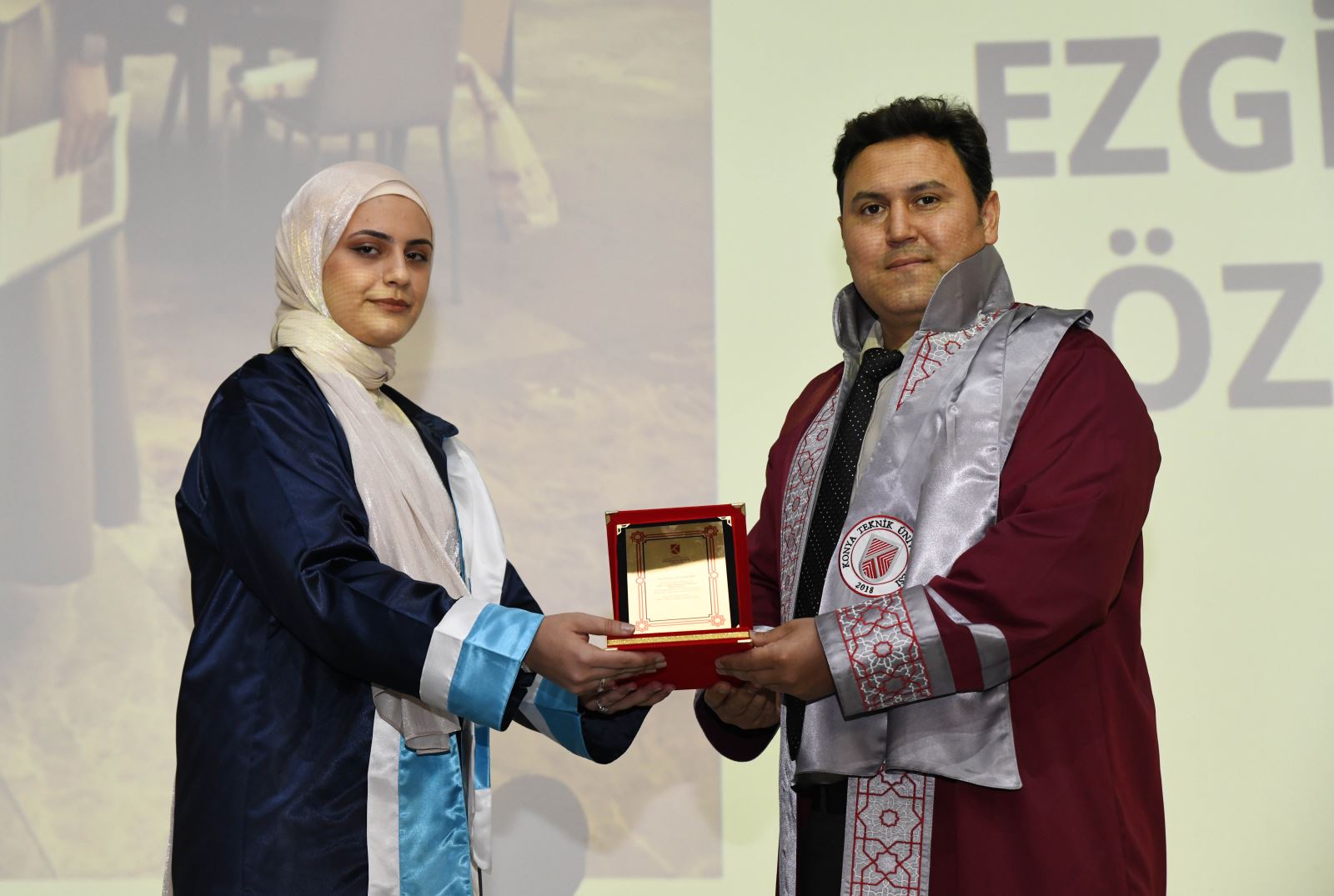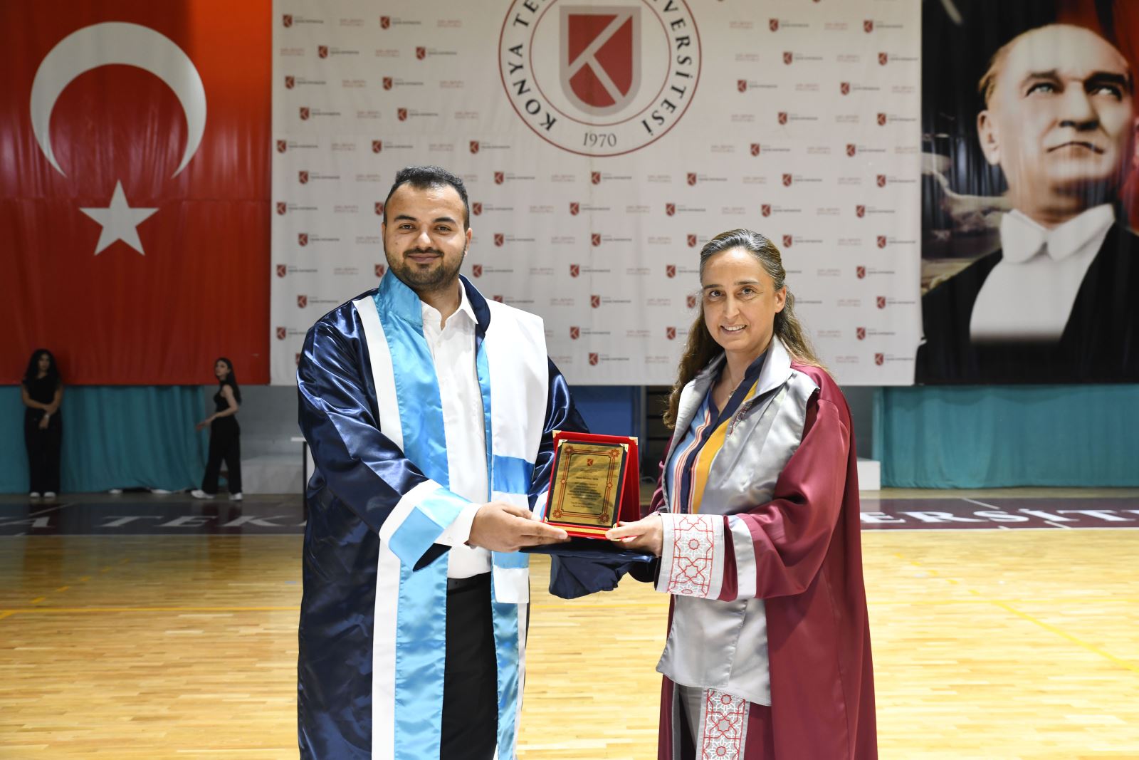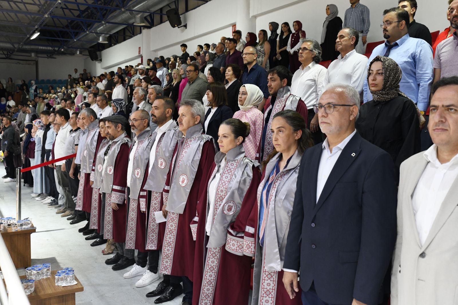 Törende konuşma yapan Rektör Yardımcımız Prof. Dr. Hüseyin Deveci, öğrencilerin yıllar süren çaba ve özverilerinin karşılığını aldıkları bu anlamlı günde duyduğu memnuniyeti dile getirdi. Eğitimin yalnızca mesleki bilgiyle sınırlı olmadığını, bireylerin sahip oldukları değerlere bağlı kalarak kendilerini sürekli geliştirmelerinin önemine dikkat çekti. Rektör Yardımcımız, mezunlara gelecek yaşamlarında başarılar dileyerek, her zaman KTÜN ailesinin bir parçası olduklarını hatırlattı.