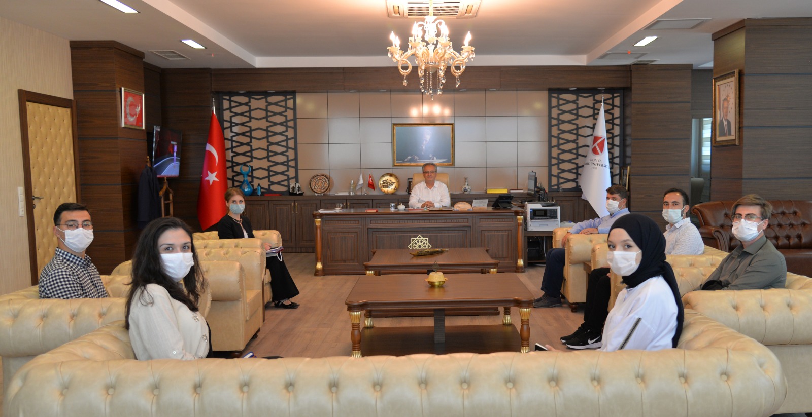 Konya Teknik Üniversitesi Mühendislikte Gelişim Topluluğu, KTÜN Rektörü Prof. Dr. Babür Özçelik’e ziyaret etti. Pandemi dönemi boyunca yürüttükleri çalışmalar hakkında Rektör Prof. Dr. Özçelik’e bilgi veren topluluk üyeleri, yürüttükleri proje ve çalışmalar hakkında da görüş alışverişinde bulundu.