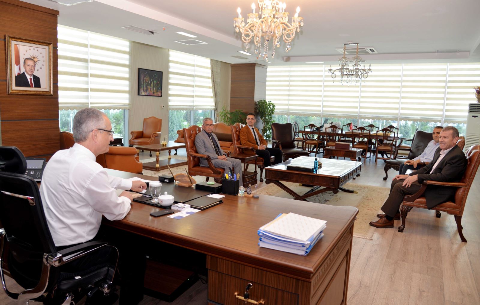 Petek Plastik A.Ş. Sahibi Kazım Öztürk ve Firma Yetkilileri Osman Saraç ile Esen Burak Gezen Rektörümüz Prof. Dr. Babür Özçelik’i makamında ziyaret etti.