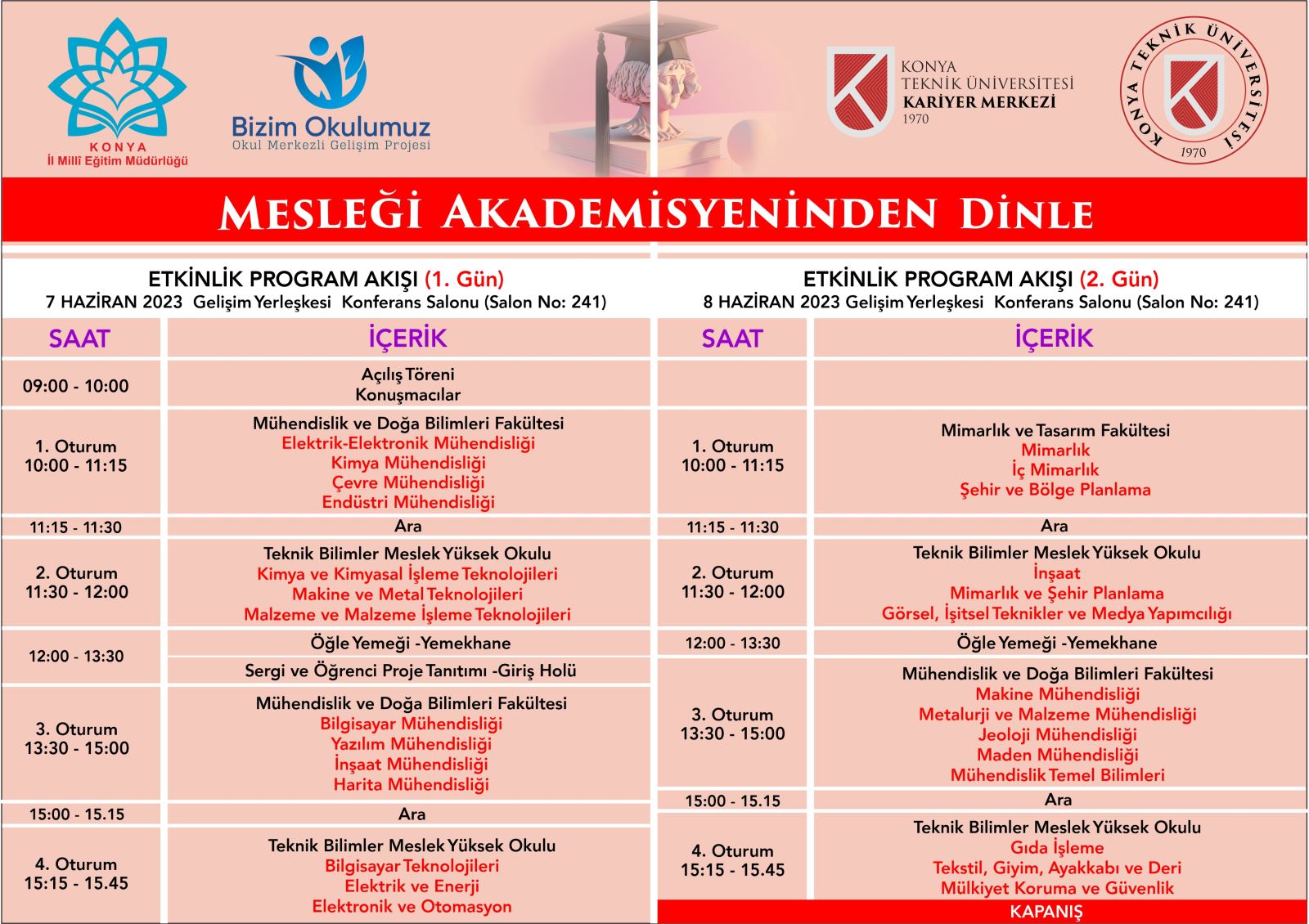 7–8 Haziran 2023 tarihlerinde sabah ve öğleden sonra oturumları ile toplam dört oturumda 2 gün boyunca sürecek etkinlikte, her bölümden yetkin bir akademisyen kendi bölümü hakkında rehberlik ve psikolojik danışman öğretmenlerine geniş bilgi aktaracak.