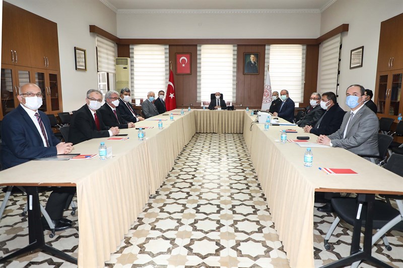 2020/2021 eğitim öğretim yılı ikinci dönem Üniversite Güvenliği Koordinasyon ve İşbirliği toplantısına; Vali Vahdettin Özkan, Selçuk Üniversitesi Rektörü Prof. Dr. Metin Aksoy, KTO-Karatay Üniversitesi Rektörü Prof. Dr. Bayram Sade, Konya Necmettin Erbakan Üniversitesi Rektörü Prof. Dr. Cem Zorlu, Konya Gıda ve Tarım Üniversitesi Rektörü Prof. Dr. Cumhur Çökmüş, Konya Teknik Üniversitesi Rektörü Prof. Dr. Babür Özçelik, İl Jandarma Komuatanı Tuğgeneral Şakir Uslu, İl Emniyet Müdürü Mustafa Aydın, Gençlik ve Spor İl Müdürü Abdurrahman Şahin ve İl Milli Eğitim Müdürü Seyit Ali Büyük katıldı.