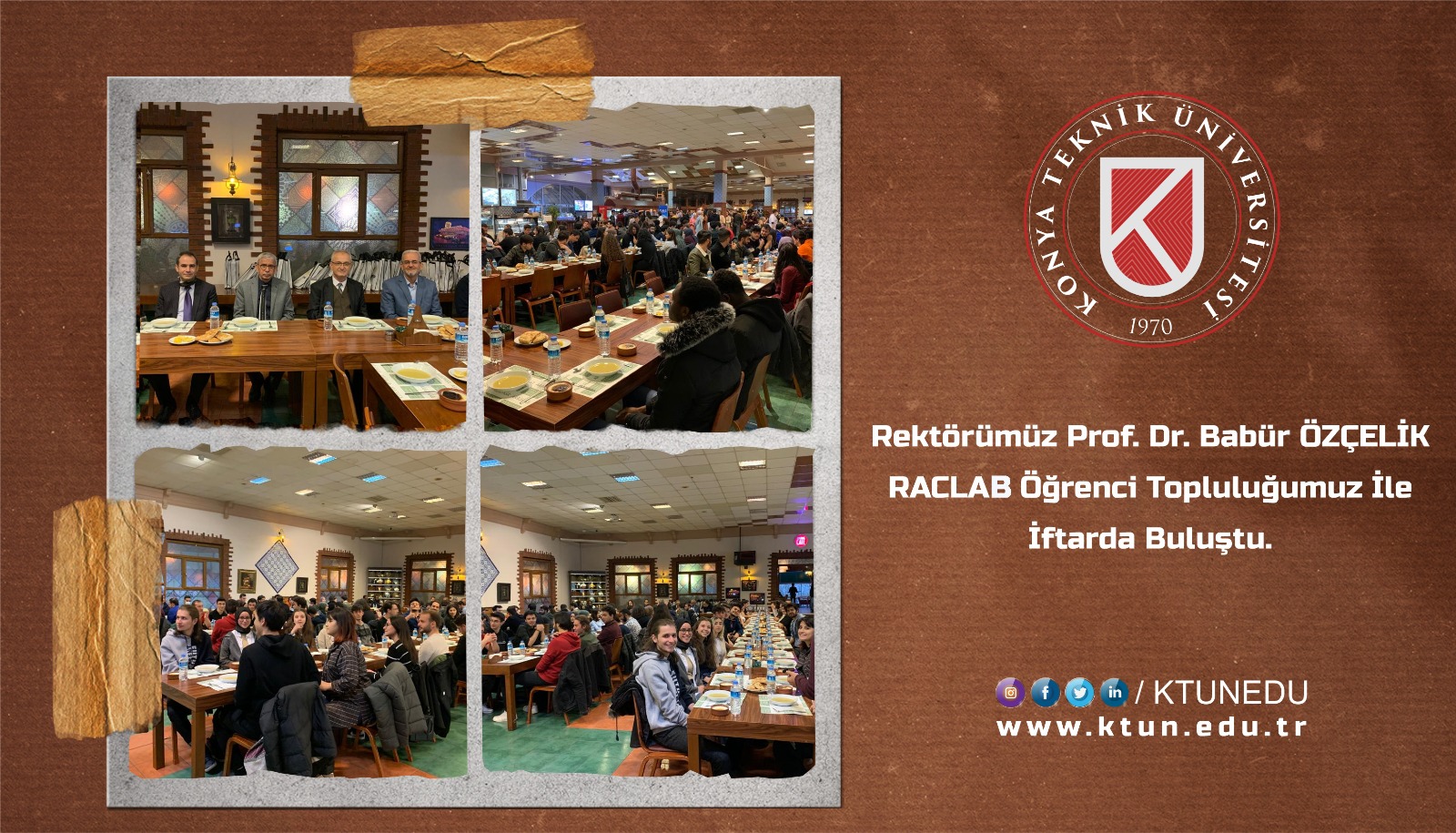 Konya Teknik Üniversitesi (KTÜN) Rektörümüz Prof. Dr. Babür Özçelik, RACLAB Topluluğuna verilen iftar yemeğine katıldı.