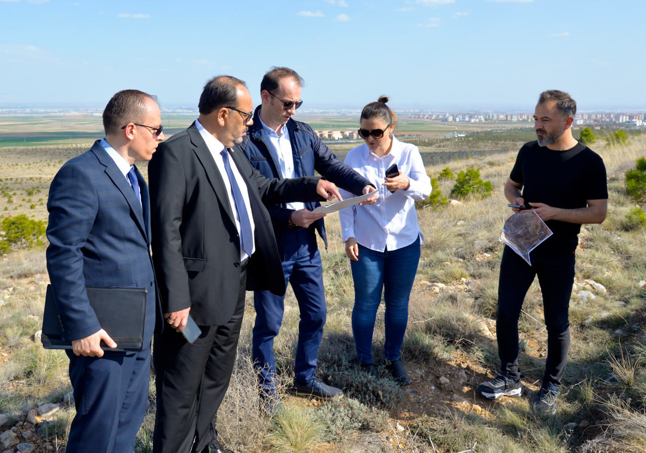 İstanbul Yolu Caddesi Dokuz mevkiinde bulunan alanı inceleyen Rektörümüz Prof. Dr. Osman Nuri Çelik, Genel Sekreter Kamil Gök ve Yapı İşleri ve Teknik Daire Başkanı, Rektör Danışmanı Osman Deniz Şimşek ile birlikte teknik personel de eşlik etti.