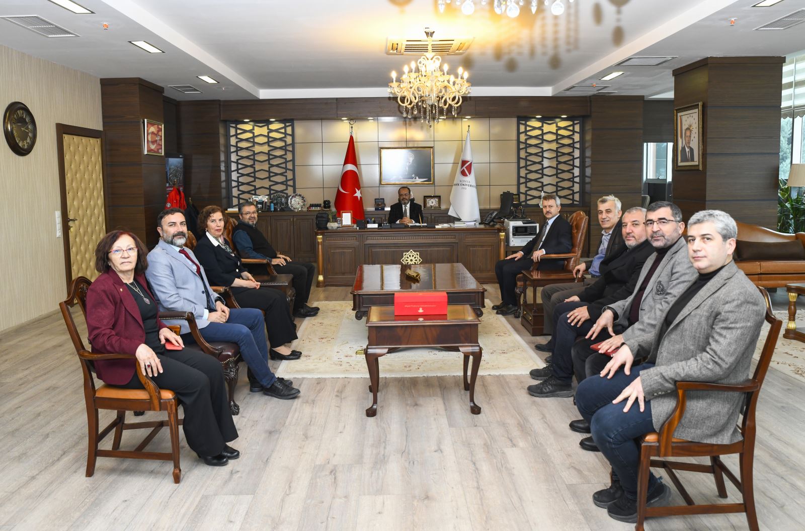Rektörlük makamında gerçekleştirilen programa, Rektör Yardımcılarımız Prof. Dr. Muazzez Çelik Karakaya ve Prof. Dr. Hüseyin Deveci de eşlik etti.