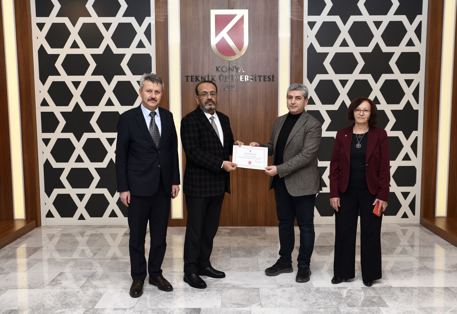 Üniversitemiz Akademik Teşvik Düzenleme, Denetleme ve İtiraz Komisyonunda görev alarak gerçekleştirmiş oldukları çalışmalardan dolayı Prof. Dr. Havva Filiz Meşhur, Prof. Dr. Mustafa Tabakcı, Prof. Dr. Süleyman Bahadır Yüksel, Prof. Dr. Abdullah Selçuk Kurbanlı, Prof. Dr. Mahmut Kuş, Prof. Dr. Cengiz Okuyucu ve Prof. Dr. Ayhan Göktepe Rektörümüzden Teşekkür Belgesi aldı.