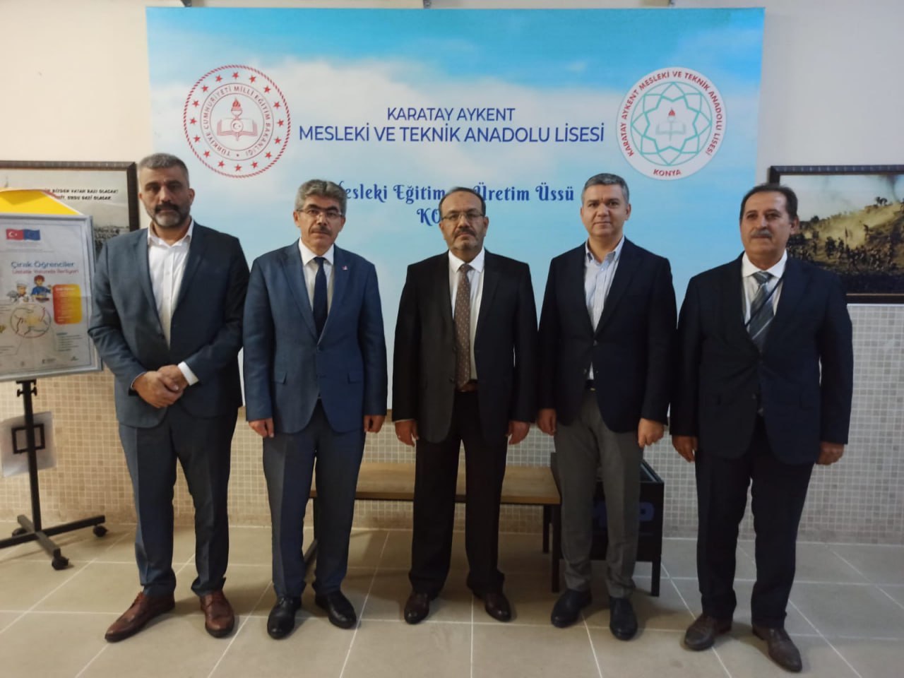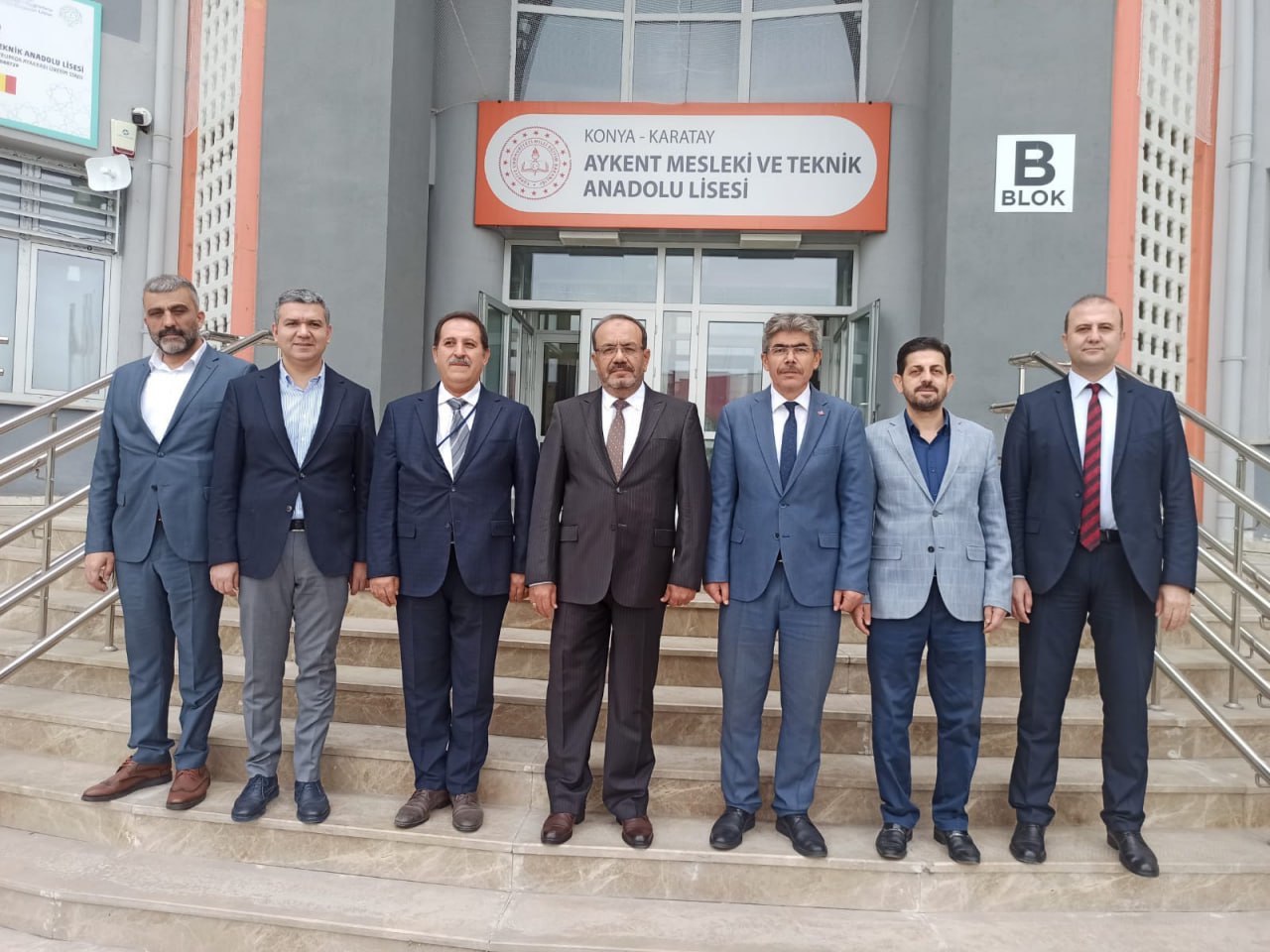 Rektörümüz daha sonra, Konya Ayakkabıcılar Esnaf Odası Başkanı Muhammet Acar ve beraberindeki heyet ile birlikte Aykent Mesleki ve Teknik Anadolu Lisesini ziyaret ederek okul atölyelerinde tasarlanan ve üretilen ayakkabıları inceledi.