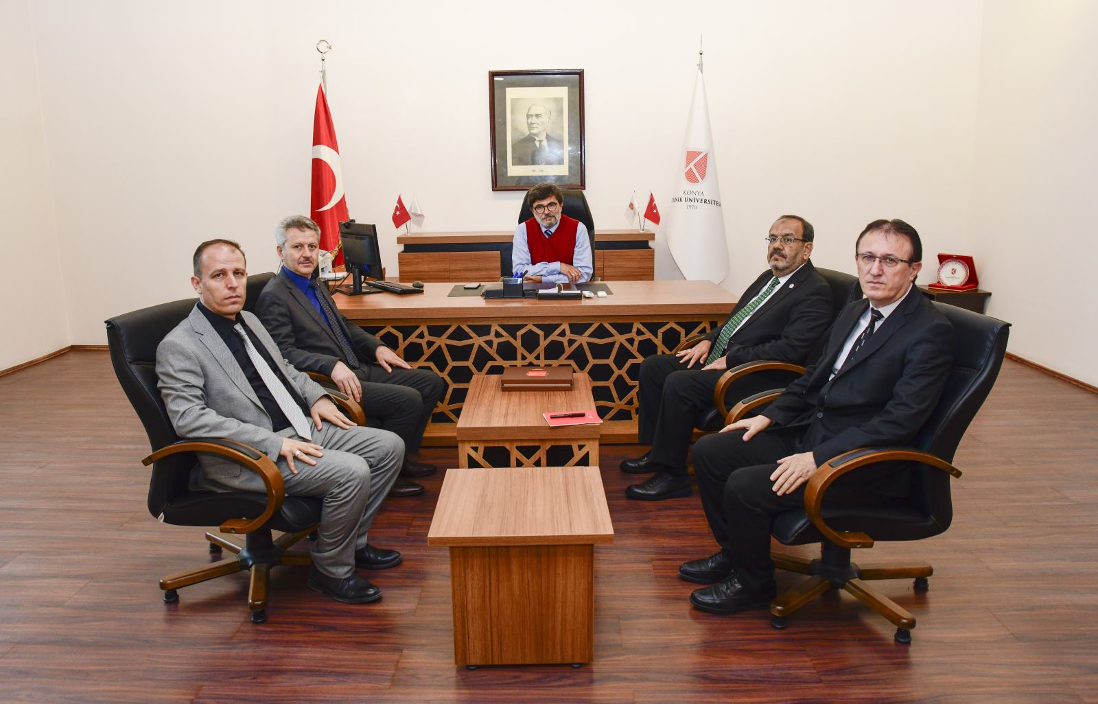 Rektörümüz Prof. Dr. Osman Nuri Çelik, Mimarlık ve Tasarım Fakültesi Dekanlığına atanan Prof. Dr. Mehmet Çağlar Meşhur’a hayırlı olsun ziyaretinde bulunarak yeni görevinde başarılar diledi. Ziyarete Rektör Yardımcımız Prof. Dr. Hüseyin Deveci , Genel Sekreterimiz Kamil Gök ve Fakülte Sekreteri Tevfik Balcı katıldı.