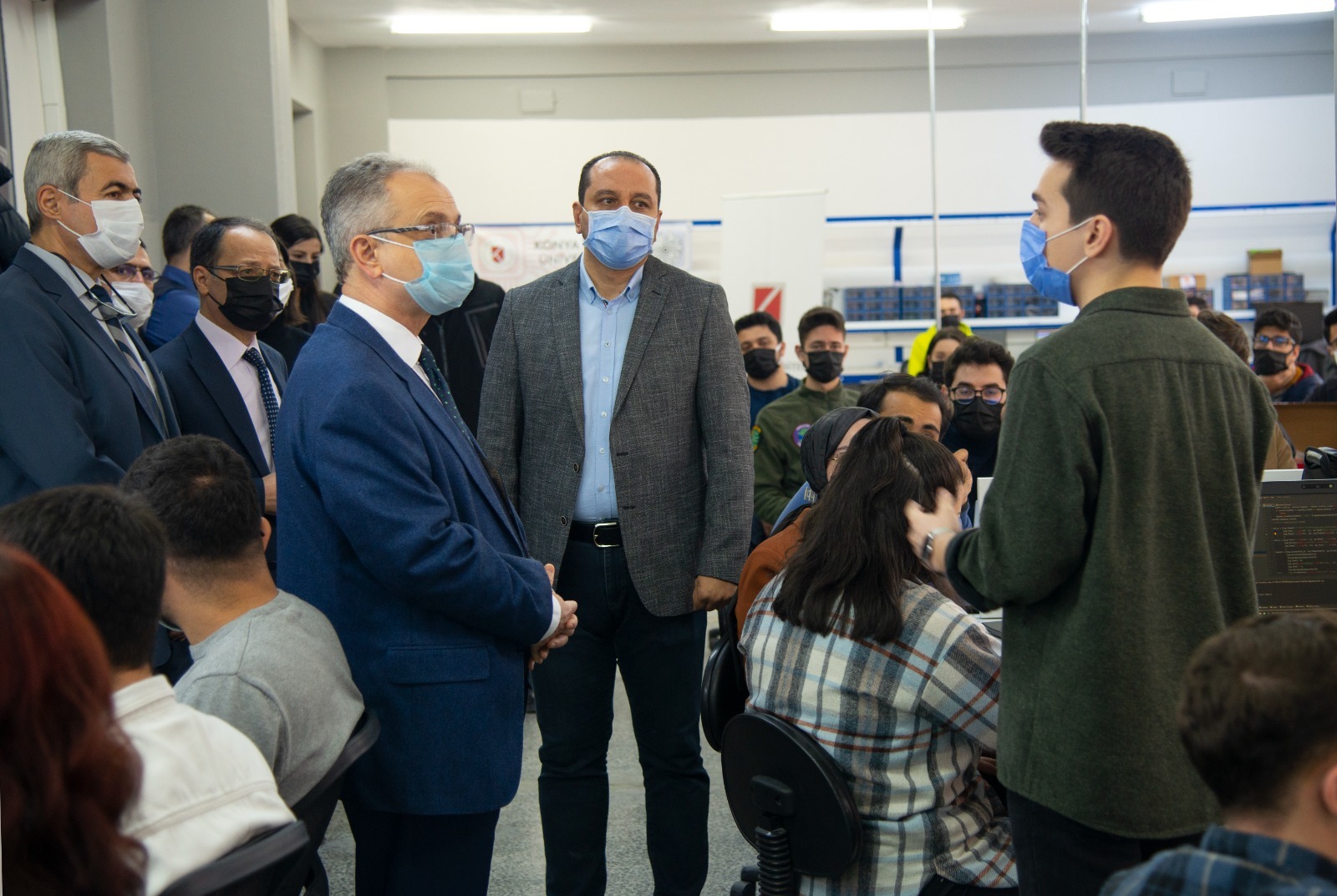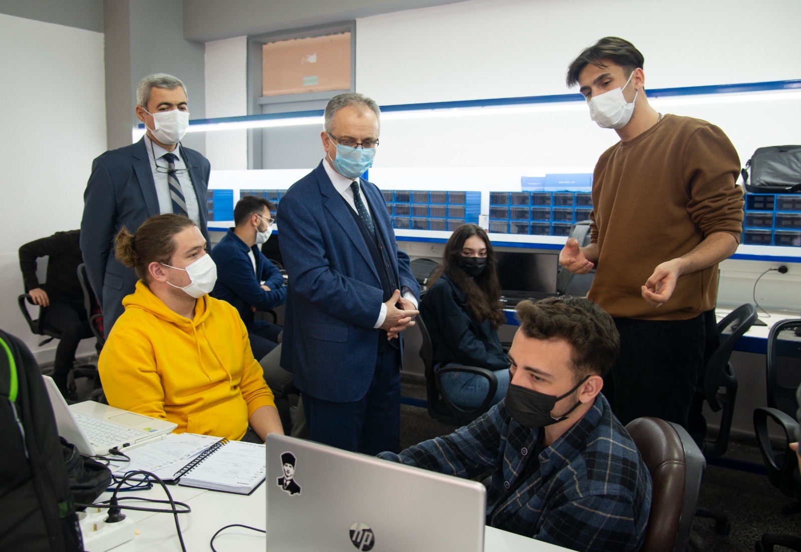 Rektörümüz topluluk üyelerine yaptığı ziyarette, takımların gerçekleştirdiği ve yapmayı planladıkları çalışmalar hakkında bilgi aldı. Öğrenciler için moral ve motivasyon sağlayan ziyaret sonrası değerlendirmelerde bulunan Rektörümüz, “Bünyesinde faaliyet gösteren 34 öğrenci topluluğuna sahip bir üniversiteyiz. Her bir öğrenci topluluğumuz bizim için değerli, kendi alanında çalışmalar yürüterek çeşitli yarışlara hazırlık yapıyor aynı zamanda kendilerini de yetiştiriyor. TEKNOFEST yarışlarına hazırlanan 13 farklı proje topluluğumuzun çalışmalarını öğrencilerimizden dinledik. Disiplinlerarası çalışma kültürünü benimseyen ve sergileyen öğrencilerimizin yeni projeleri bizleri oldukça heyecanlandırdı. Biz de imkanlar dahilinde topluluk ve takımlarımıza her zaman destek olmaya hazırız.” dedi.