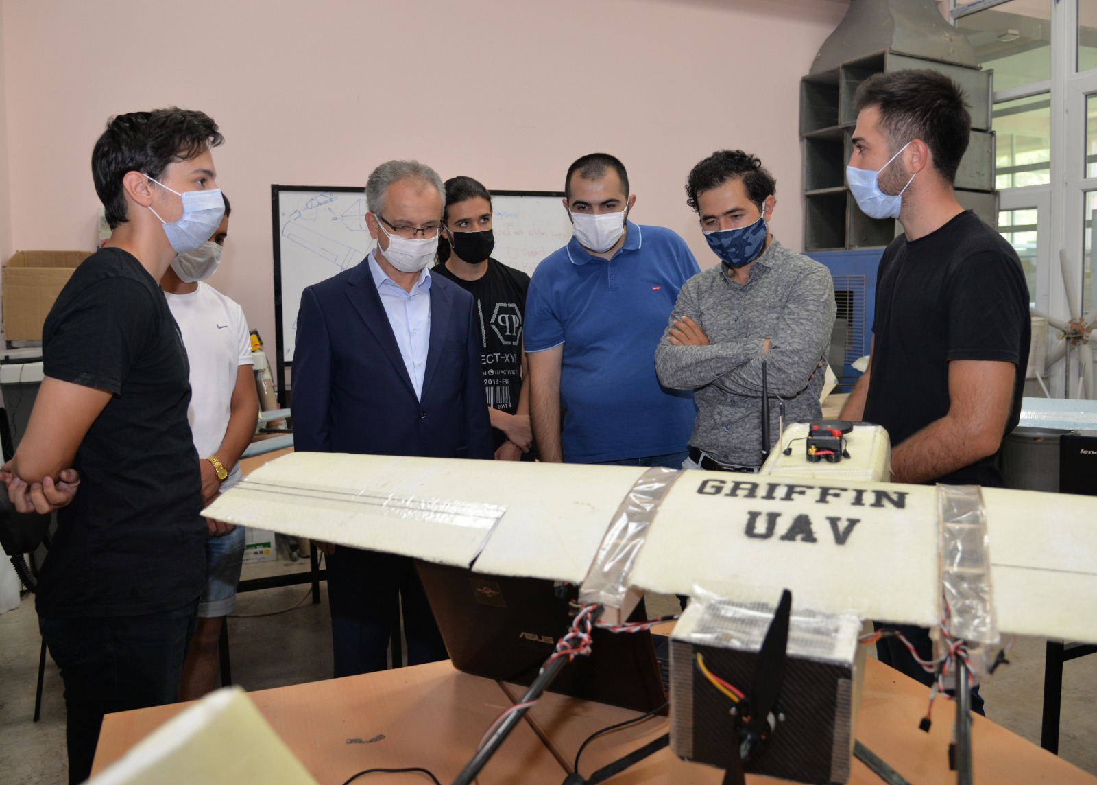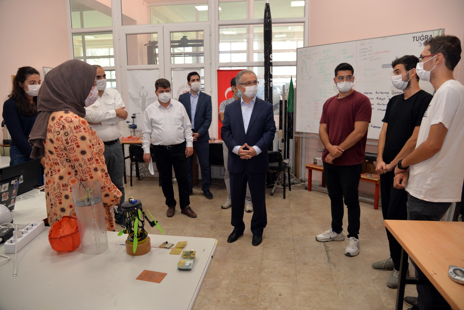 Rektör Özçelik, Uluslararası İHA Yarışları Sabit Kanat Kategorisinde yarışacak Gökdoğan, RACLAB-Tunga, Merküt-İHA, RACLAB-Göktuğ, Griffin UAV ve Doruk takımı, Çevre ve Enerji Teknolojileri kategorisinde Yeşil Kimya ekibi, İnsanlık Yararına Teknolojiler – Afet Yönetimi kategorisinde Vatoz ekibi, Tarım Teknolojileri Kategorisinde AGROCV ve Agro Kartal ile TÜRKSAT Model Uydu Yarışmasında yarışacak KTÜNSAT ekibini ve akademik danışmanlarını çalıştıkları laboratuvarda ziyaret ederek yarışmalar ve projeleri hakkında bilgi aldı.