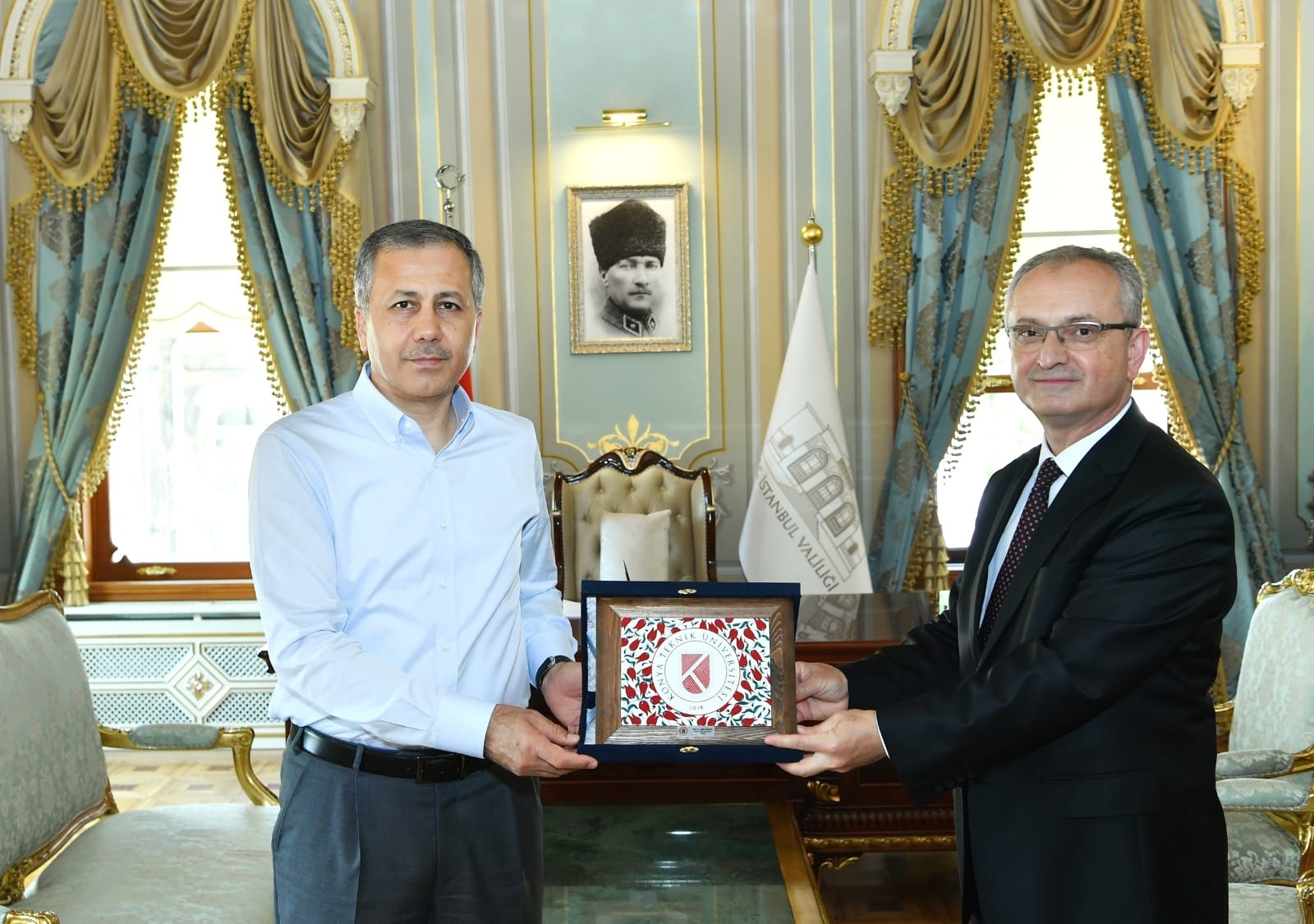 Konya Teknik Üniversitesi Rektörü Prof. Dr. Babür Özçelik, İstanbul Valisi Sayın Ali Yerlikaya'yı makamında ziyaret etti. Ziyaret sırasında gösterdiği yakın ilgi ve alakasından dolayı Vali Yerlikaya'ya teşekkür eden Rektör Özçelik, üniversitede yürütülen çalışmalar hakkında bilgi vererek, görüş alışverişinde bulundu.