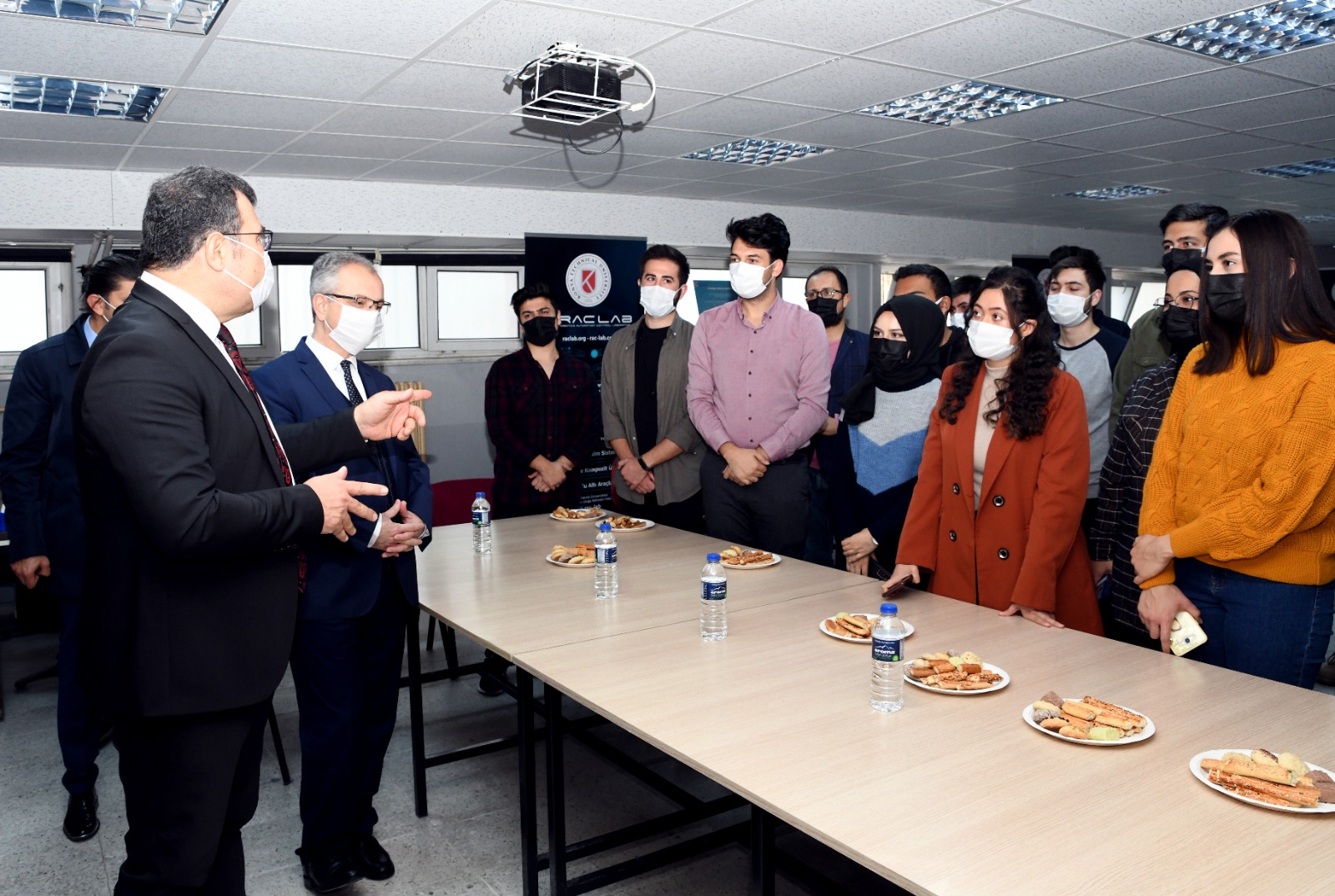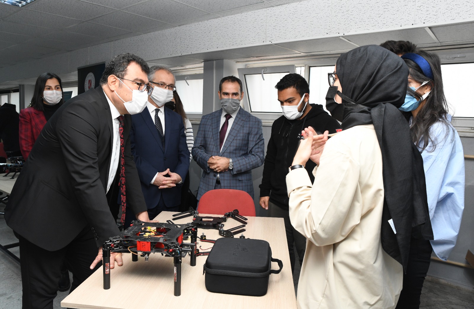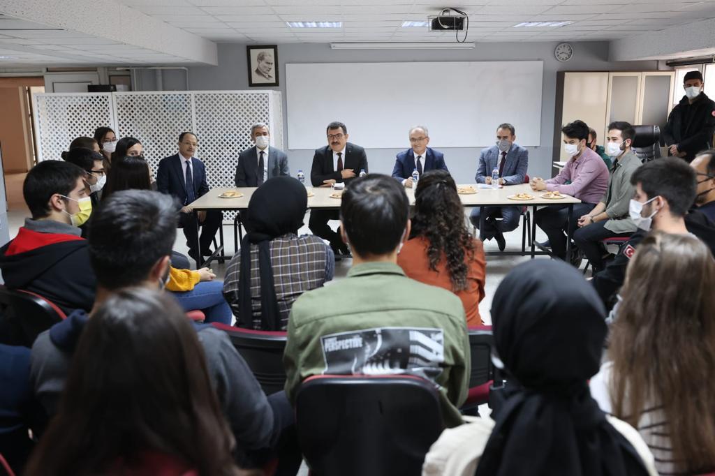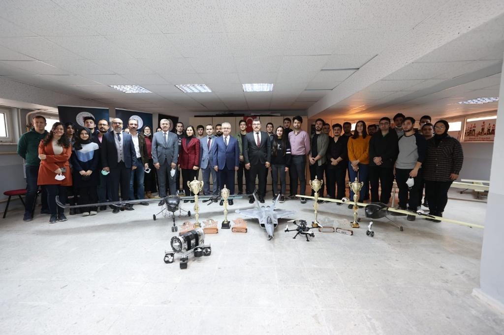 Ardından TÜBİTAK Başkanı Prof. Dr. Hasan Mandal ve Rektör Prof. Dr. Babür Özçelik, Rektör Yardımcıları Prof. Dr. H. Selçuk Halkacı, Prof. Dr. H. Kürşad Ersoy Mühendislik ve Doğa Bilimleri Fakültesini ziyaret ederek TEKNOFEST yarışmalarına katılan takımlarla bir araya geldi.