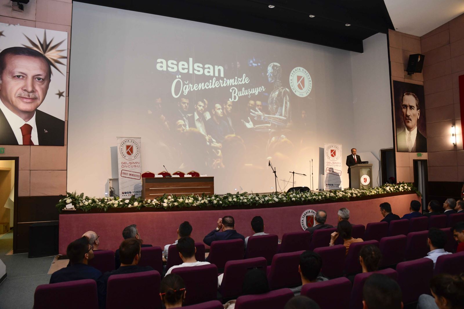 Üniversitemiz tarafından düzenlenen organizasyonla ülkemizin savunma sanayiine büyük katkılarıyla adından söz ettiren ASELSAN yetkilileri öğrencilerimiz ile buluştu.