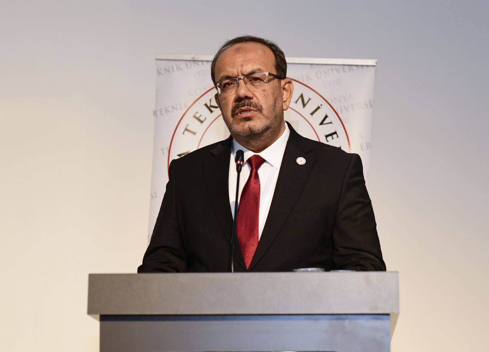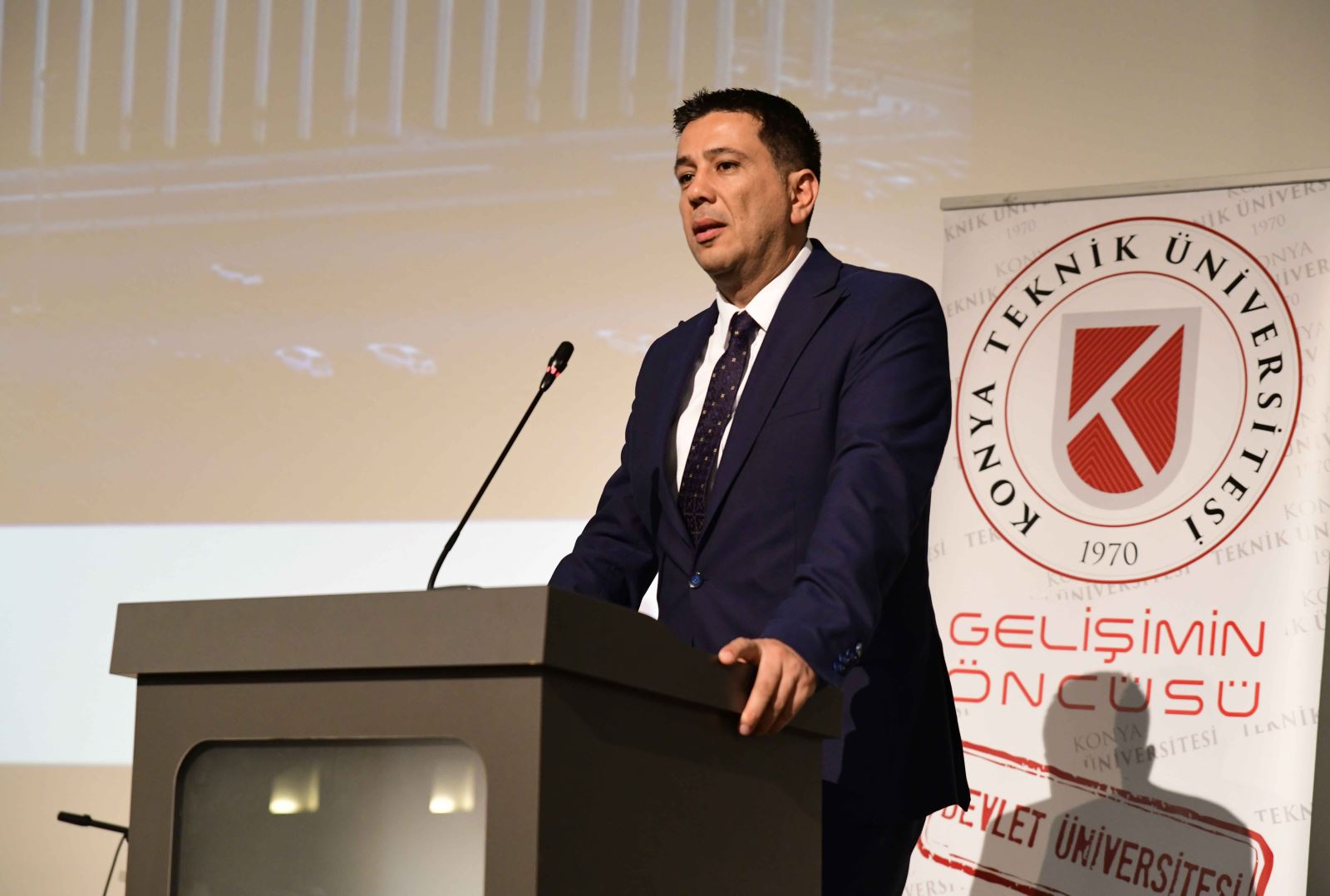 Kılıç’ın sunumunun ardından kürsüye gelen Rektörümüz Prof. Dr. Çelik, KTÜN’ün köklü geçmişine değinerek başladığı konuşmasında KTÜN bünyesinde bulunan Bilgisayar Mühendisliği Bölümünün ülkemizdeki ilk kurulan bilgisayar mühendisliği bölümlerinden biri olduğunu belirtti. Bilişim teknolojileri başta olmak üzere ülke teknolojisine KTÜN’ün büyük katkılar sağladığının altını çizen Rektörümüz Çelik, “Konya Teknik Üniversitesi olarak, Ülkemizin milli teknoloji hamlesiyle ve teknolojik hedefleriyle uyumlu, savunma sanayiine yönelik projeler geliştiriyoruz. Savunma Sanayii Müsteşarlığı’nın belirlediği öncelikli alanlarda projeler yürütüyoruz. Bu amaçla, bir taraftan araştırma ve geliştirme faaliyetlerimizi yaparken, diğer taraftan nitelikli mühendis yetiştirmek için gayret ediyoruz, Türkiye’nin en iyi mühendislerini ASELSAN bünyesinde istihdam ediyor, sizler de onlardan biri olabilirsiniz.” dedi.