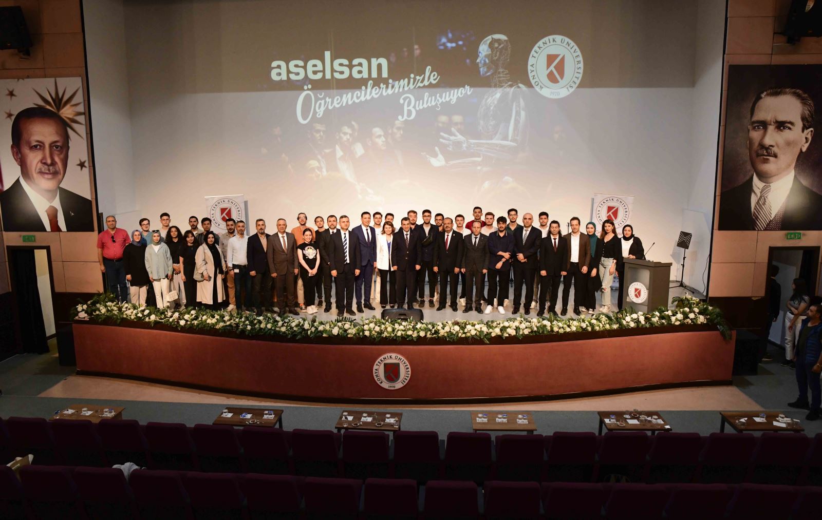 KTÜN Gelişim Yerleşkesi konferans salonunda gerçekleşen etkinliğe, Rektörümüz Prof. Dr. Osman Nuri Çelik’in yanı sıra Rektör Yardımcımız Prof. Dr. Hüseyin Deveci, ASELSAN Teknoloji ve Strateji Yönetimi Genel Müdür Yardımcısı Taha Yücel, ASELSAN Akademi Direktörü Prof. Dr. Abdurrahman Akyol, ASELSAN Teknoloji ve Yenilikçilik Yönetimi Direktörü Doç. Dr. Ahmet Fazıl Yağlı, ASELSAN Strateji Yönetimi ve Dijital Dönüşüm Direktörü Murat Şahin, akademik ve idari personelimiz ile öğrencilerimiz katıldı.