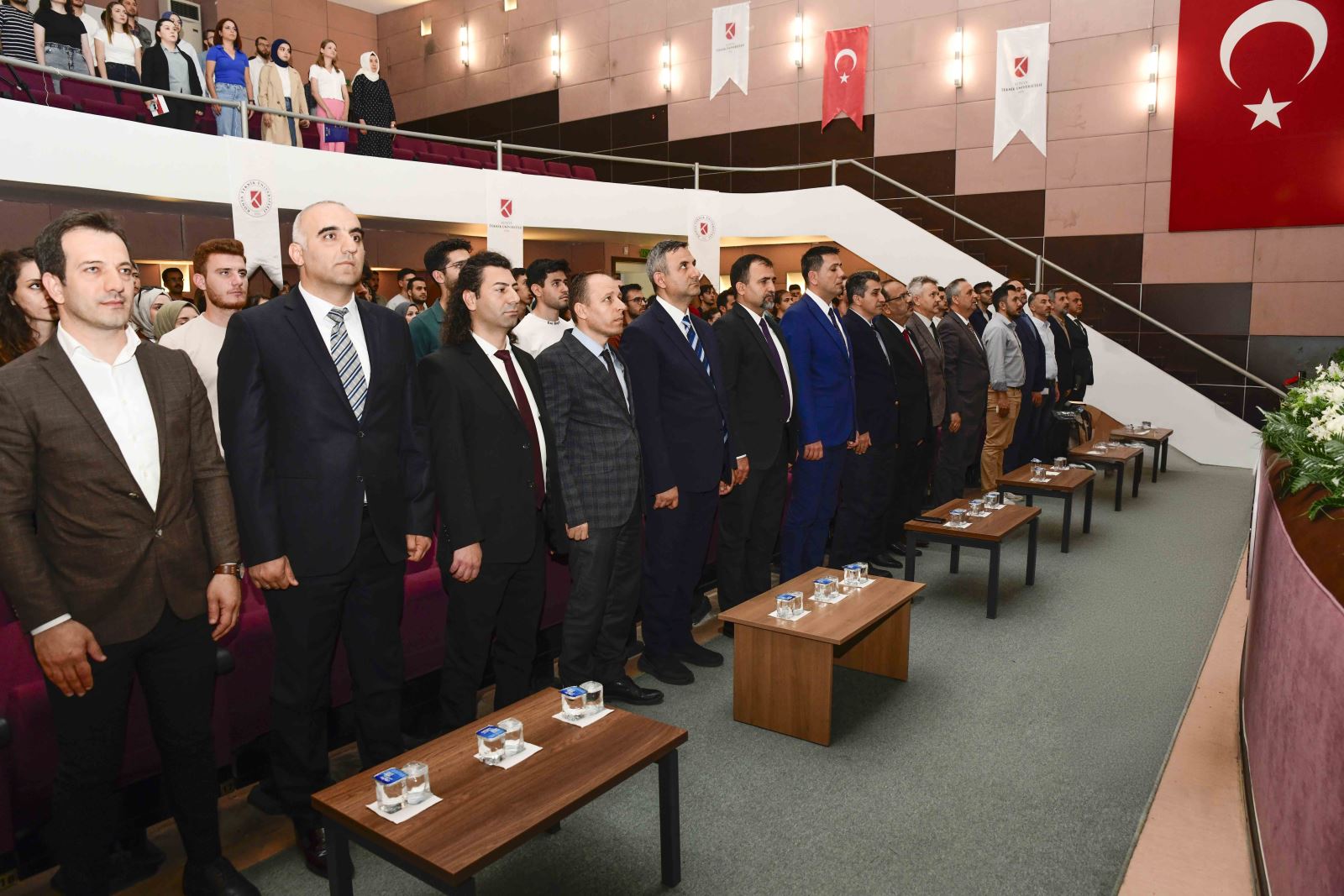 Saygı duruşu ve İstiklal Marşı ile başlayan program öğrencilerin müzik dinletisi ile devam etti. Program, KTÜN Savunma, Uzay ve Havacılık Teknolojileri Uygulama ve Araştırma Merkezi Müdürü Dr. Öğr. Üyesi Alper Kılıç’ın sunumuyla devam etti. Üniversitemizdeki akademisyenler tarafından yürütülen teknolojik çalışmalar hakkında bilgilendirme yapan Dr. Öğr. Üyesi Kılıç, savunma sanayii alanı başta olmak üzere KTÜN’ün ASELSAN ve ülke teknolojisine sağladığı katkıları anlattı.