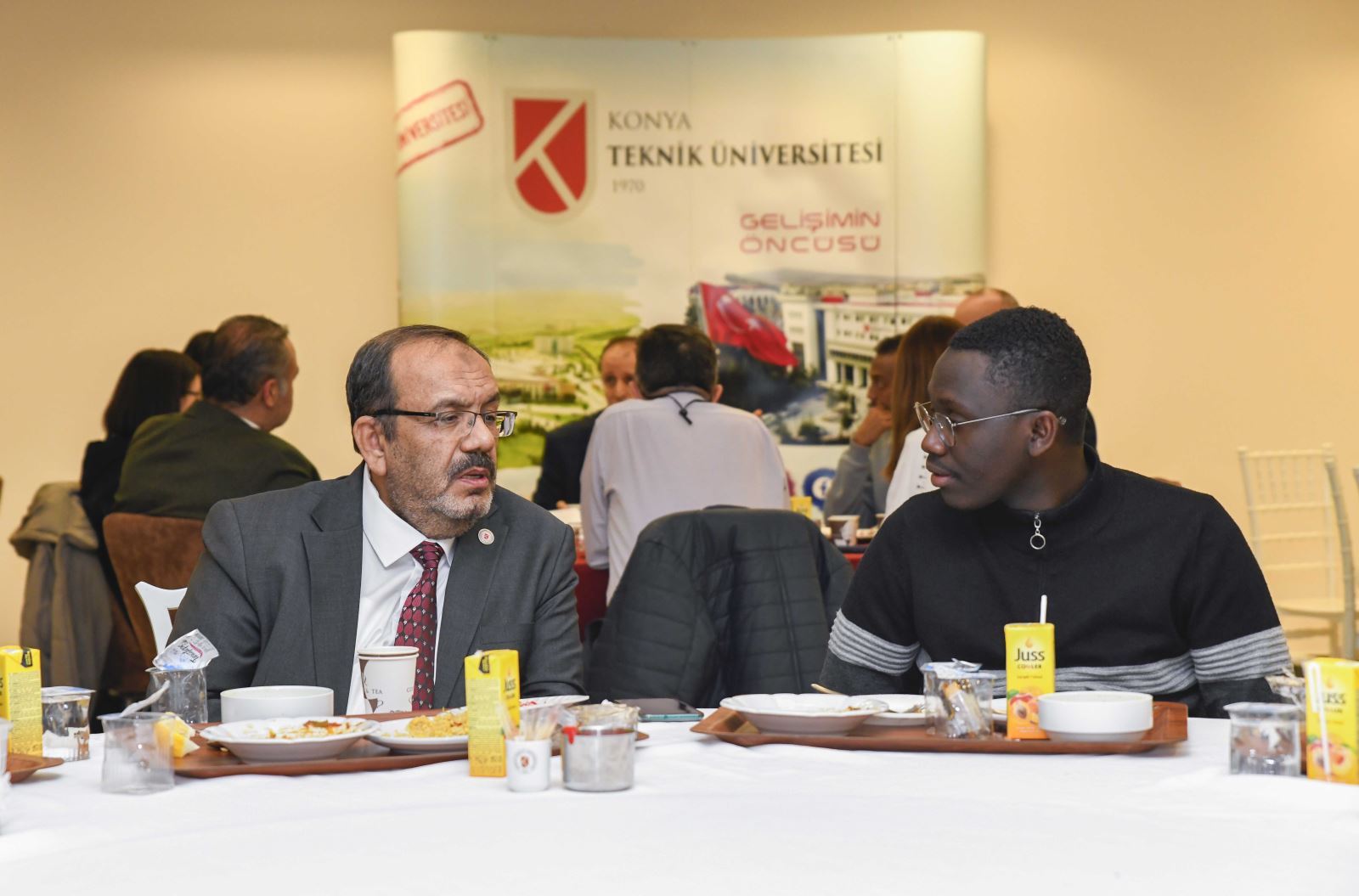 İftar programında konuşan Rektörümüz, “Ramazan ayının bu manevi ikliminde, siz kıymetli misafirlerimizle bir araya gelmekten büyük bir sevinç duyduğumu ifade etmek isterim. Üniversitemizin ev sahipliğinde gerçekleştirilen bu iftar programında, farklı kültürlerden ve coğrafyalardan gelen öğrencilerimizle aynı sofrayı paylaşmak, bizim için büyük bir anlam taşıyor. Burada sadece birer misafir değilsiniz; üniversitemizin ayrılmaz bir parçasısınız. Elde edeceğiniz başarılar, bizim en büyük gurur kaynağımız. Eğitiminiz boyunca her türlü desteği sağlamak için buradayız ve sizleri en iyi şekilde yetiştirmek en büyük hedefimiz” dedi.