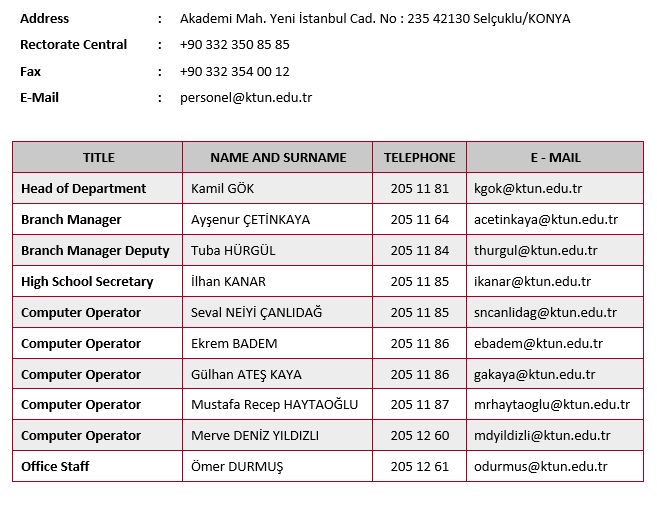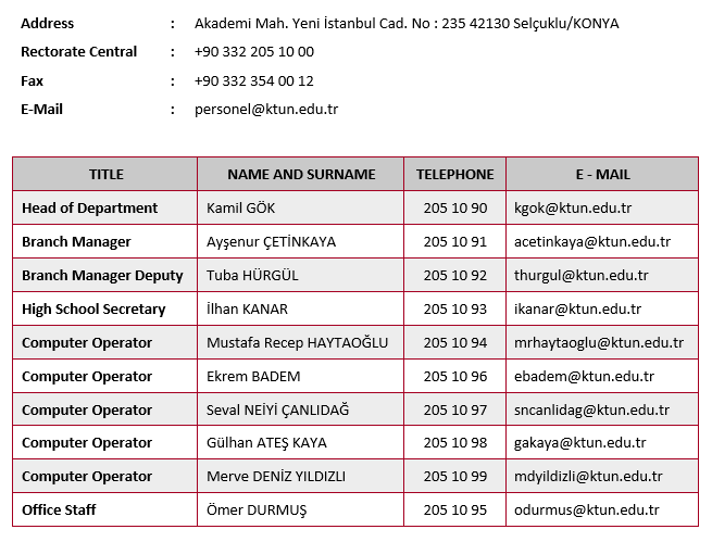 Units Affiliated to the Rectorate