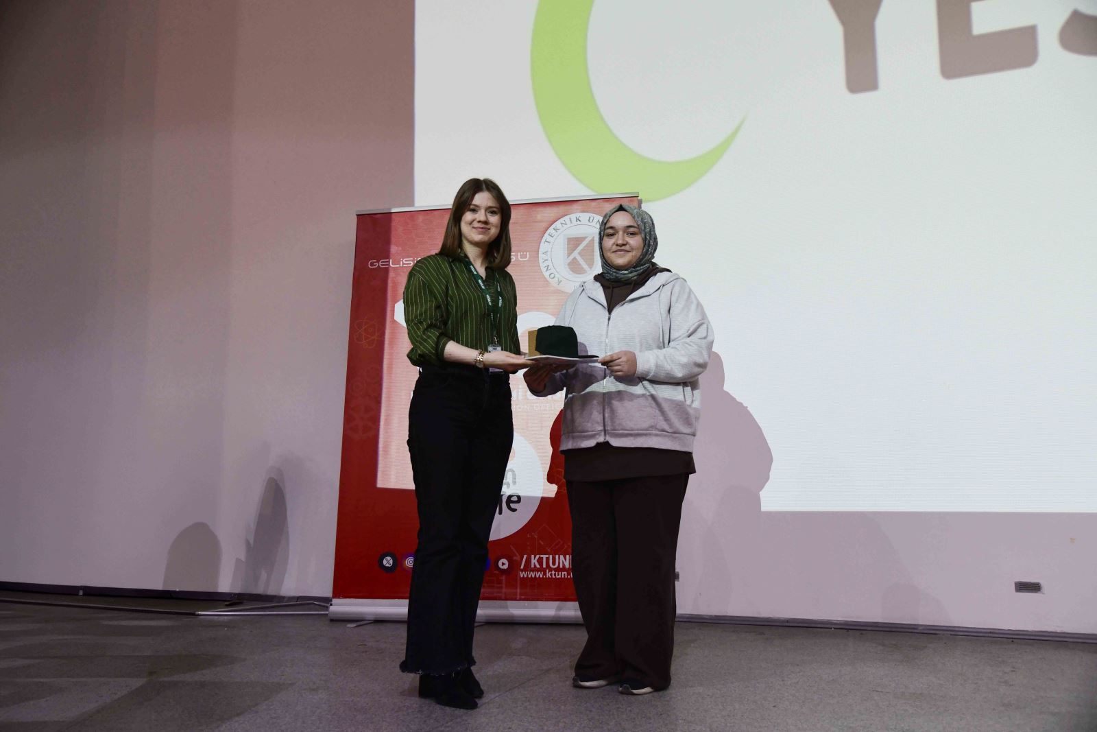 Within the scope of the program, Prof. Dr. Yağmur Küçükbezirci, President of the Konya Branch of the Green Crescent, and Betül Palta, Social Work Specialist at the Green Crescent Counseling Center, shared comprehensive information on the individual, social, and psychological dimensions of addiction and on how to combat addiction. The presentations addressed types of addiction such as substance, technology, and behavioral addictions, as well as risk factors, methods of prevention, and professional support mechanisms. In particular, the importance of gaining awareness and early intervention during youth was emphasized.