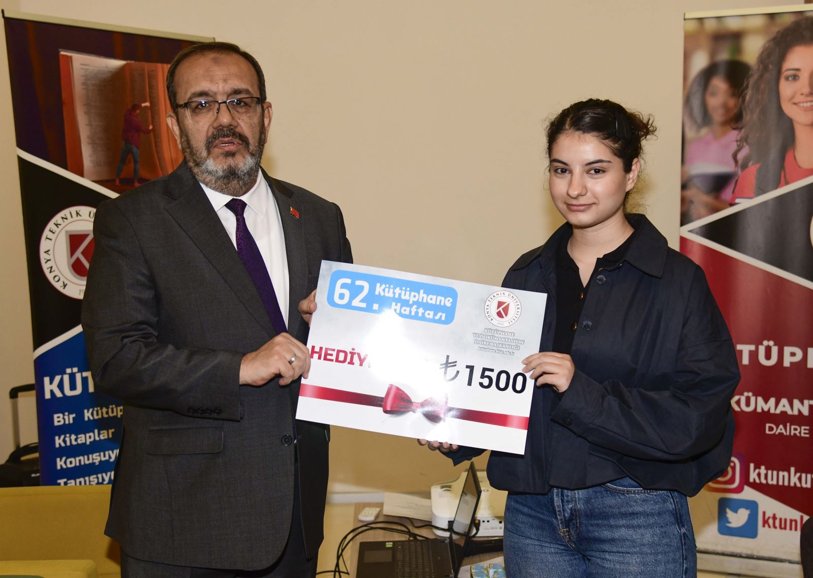 Programın devamında geleneksel ödül törenine geçildi. 2025 yılında en fazla kitap okuyan ve veri tabanlarını en etkin kullanan kütüphane kullanıcılarına ödülleri, Rektör Prof. Dr. Osman Nuri Çelik ile Rektör Yardımcısı Prof. Dr. Ali Köken tarafından takdim edildi.