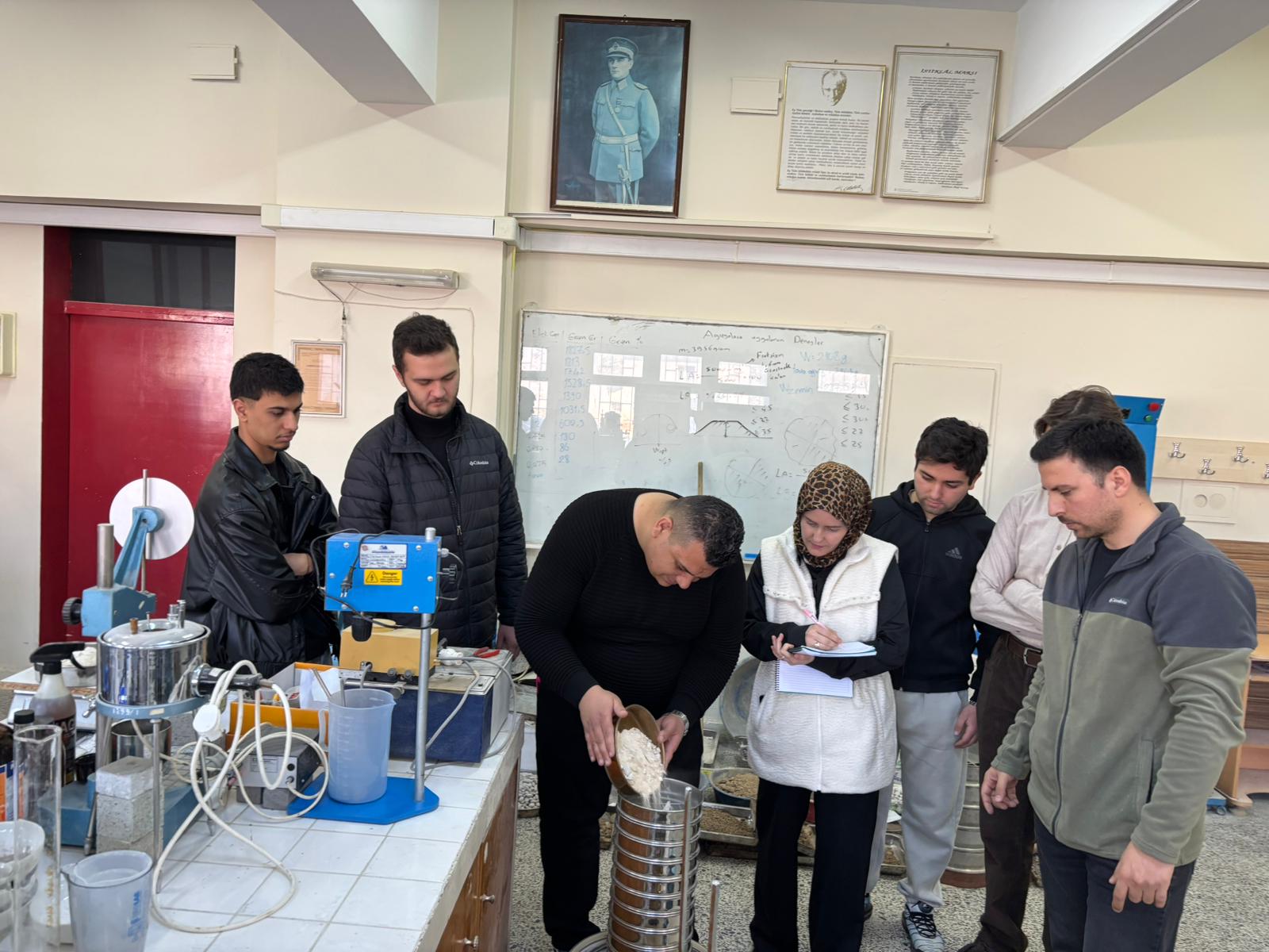 Konya Teknik Üniversitesi Teknik Bilimler Meslek Yüksekokulu Yapı Yalıtım Teknolojisi Programı öğrencilerine yönelik olarak, Öğr. Gör. Dr. Salih CENGİZ koordinatörlüğünde yürütülen *Temel Zemini ve Temel Yalıtımı* dersi kapsamında *Elek Analizi Deneyi* gerçekleştirilmiştir.