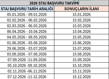 STAJ BAŞVURU EVRAKLARI